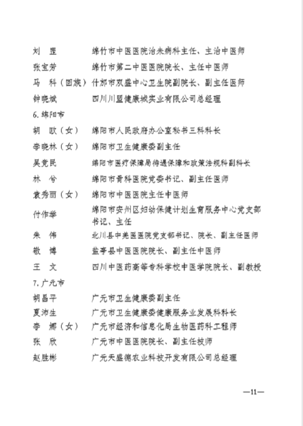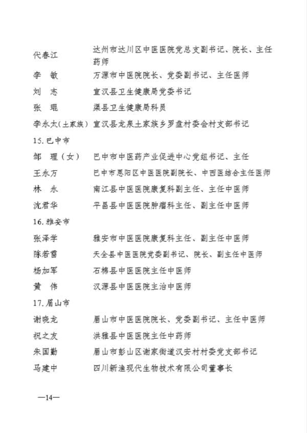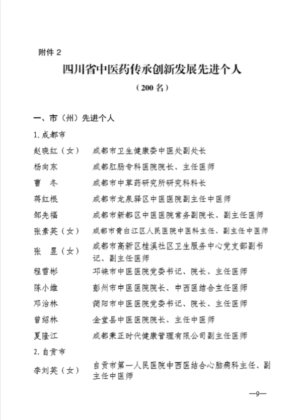 四川省中醫(yī)藥傳承創(chuàng)新發(fā)展先進(jìn)個人部分名單: