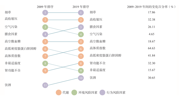 2009和2019年,影響中國60歲及以上老年人群健康的危險(xiǎn)因素順序發(fā)生變化