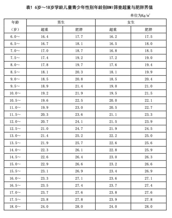體質(zhì)指數(shù)(BMI)是國(guó)際社會(huì)推薦的評(píng)價(jià)兒童(≥2歲)超重和肥胖的首選指標(biāo),BMI=體重(kg)÷身高的平方(m2)。孩子每個(gè)年齡階段的BMI是不一樣的:1歲時(shí)BMI值最高,隨后開始下降,到6歲~7歲脂肪重聚期開始出現(xiàn)反彈,此后逐漸升高至接近成年人的水平。2-5歲兒童參考“中國(guó)0-18歲兒童、青少年體塊指數(shù)的生長(zhǎng)曲線”中2-5歲兒童超重和肥胖BMI篩查界值,6歲及以上兒童參考中國(guó)行業(yè)標(biāo)準(zhǔn)“學(xué)齡兒童青少年超重與肥胖篩查”(WS/T 586-2018)界值點(diǎn)。