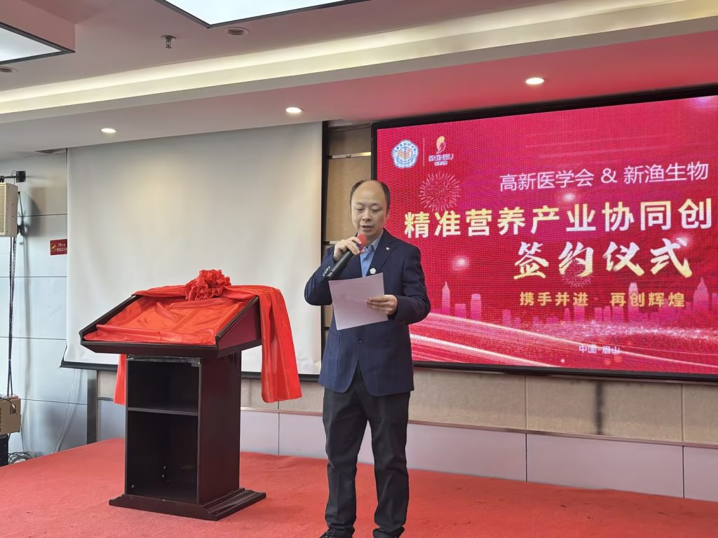 簽約儀式上,成都高新醫(yī)學(xué)會(huì)醫(yī)工融合協(xié)同創(chuàng)新中心馮懷志主任和四川新漁現(xiàn)代生物技術(shù)有限公司董事長馬建中分別致辭,表達(dá)了雙方對(duì)此次合作的高度重視和美好愿景,隨后雙方代表共同簽署了合作協(xié)議。簽約儀式結(jié)束后還舉行了成都高新醫(yī)學(xué)會(huì)精準(zhǔn)營養(yǎng)產(chǎn)業(yè)協(xié)同創(chuàng)新基地的授牌儀式。